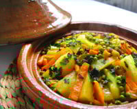 Lorsque la viande est mi-cuite, ouvrez le tajine et disposez vos légumes (les petits pois en dernier). Salez encore une fois, poivrez encore si besoin et ajoutez le persil haché. Couvrez le tajine et laissez mijoter 30 minutes environ.