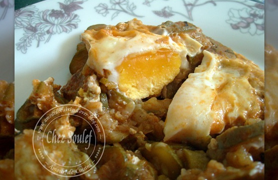Vers la fin de la cuisson, cassez les œufs par dessus, laissez cuire un peu, et éteindre le feu