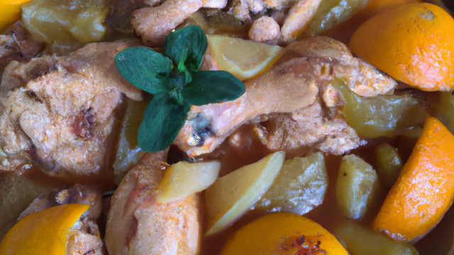 Tajine de poulet au gingembre et aux citrons confits.