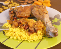 5 minutes avant la fin de la cuisson du poulet, préparez la semoule pour couscous.
