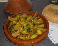 Dans un tajine de service mettre le poulet, les pommes de terre et les olives.