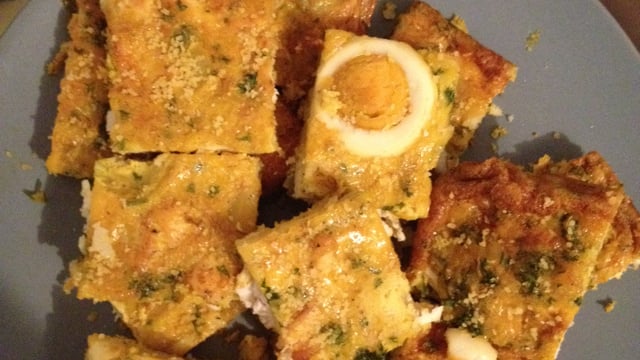 - 5Enfournez pour 30 minutes, le tajine doit être dorée.Découpez en parts ou en carrés et servez tiède ou froid.