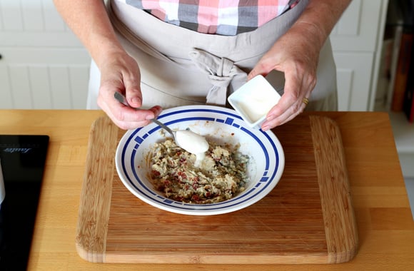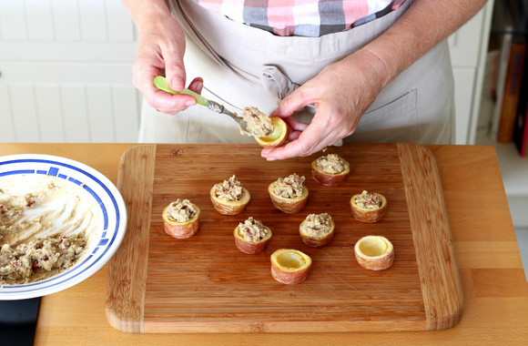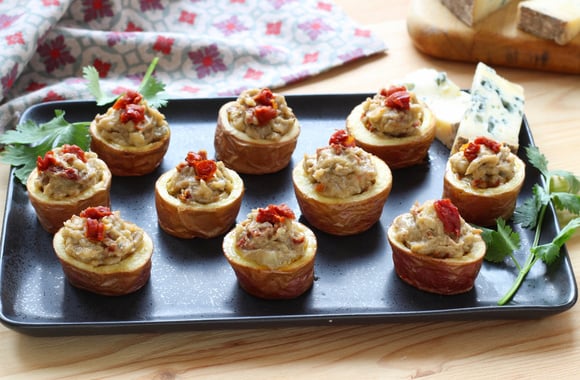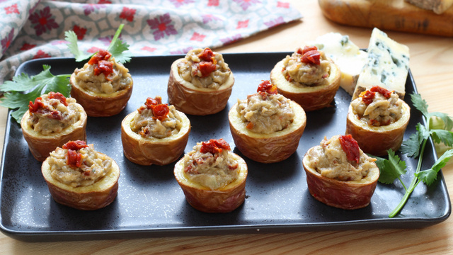 11Farcissez chaque tronçon avec le mélange à la fourme d'Ambert. Ajoutez le restant des dés de tomates séchées sur le dessus.