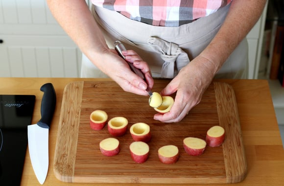 2Creusez les tronçons à l'aide d'une cuillère parisienne.