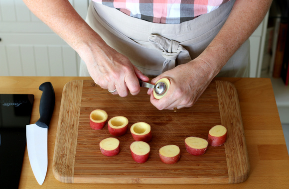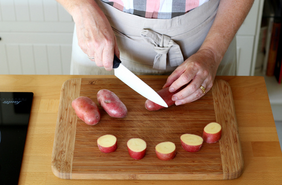 1Retirez les extrémités des pommes de terre puis coupez chaque pomme de terre en deux tronçons de 2,5 cm.