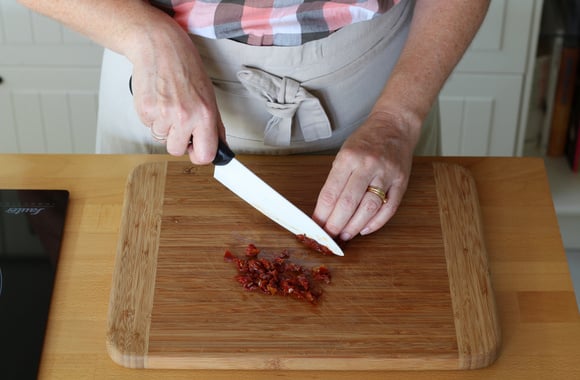 7Coupez les tomates séchées en dés.