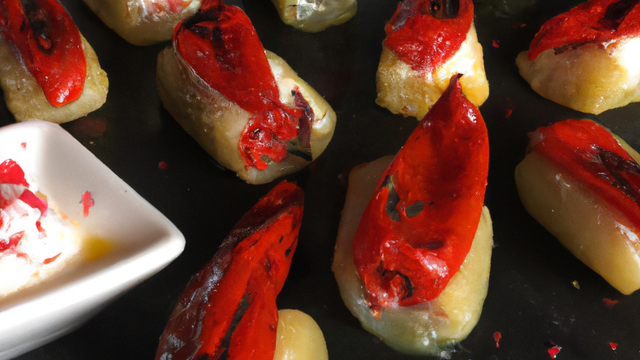 Des pimentos del piquillos farcis de brandade de morue et gratinés au four