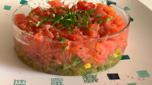 Décorer avec des tranches fines d'avocat, quelques lamelles de saumon fumé, un brin d'aneth.