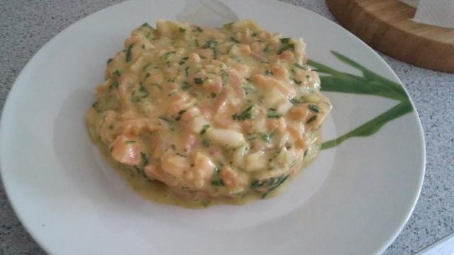 Tartare au saumon frais et saumon fumé.