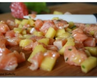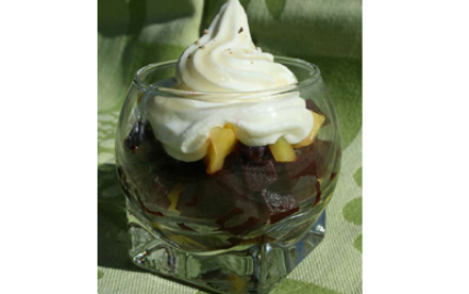 Détailler la betterave et la mangue en petits dés. Les disposer en quinconce dans le fond des verrines, sans mélanger afin d'éviter de tacher la mangue avec le jus de betterave.