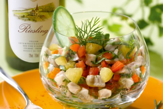 Servir aussitôt avec du Riesling d'Alsace frais.