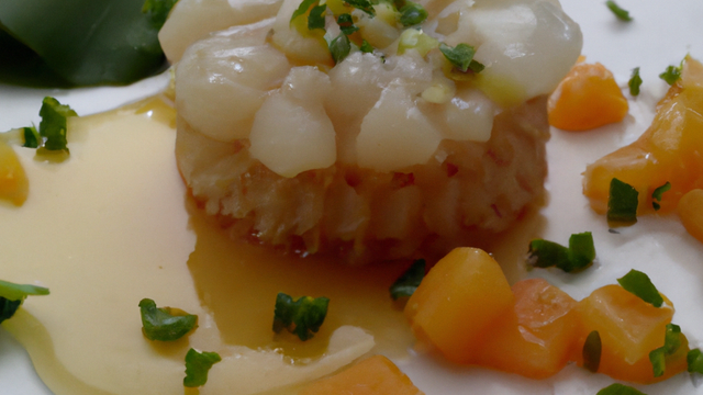Mixez le corail avec le jus de citron, ajoutez un trait d'huile d'olive et passez au tamis. Pressez les mandarines et mélangez le jus au tartare. - 2