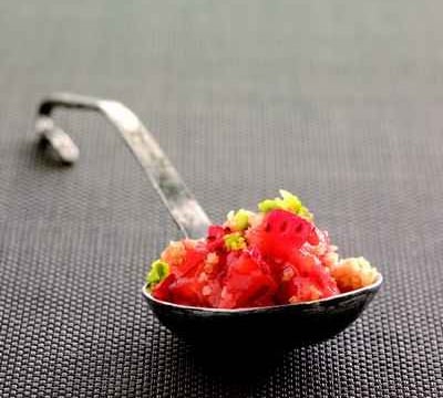 Incorporez des feuilles de menthe finement émincées dans le tartare de fraises.