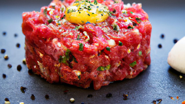 Couper la viande en tartare à l'aide d'un couteau à viande bien affûté et l(assaisonner avec la Worcestershire sauce.