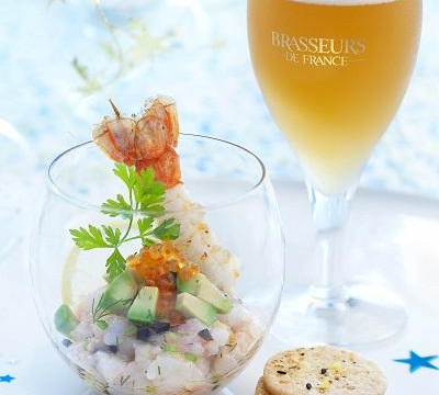 Répartir le tartare de langoustines dans des verrines. Disposer sur le dessus de chaque verrine, les cubes d'avocat et les œufs de saumon. Piquer les quatre queues de langoustines réservées sur un bâtonnet à brochettes et les faire cuire 2 minutes à feu vif dans de l'huile. Les disposer joliment sur le dessus des verrines. Déguster avec une bière de Noël, des crackers aux poivres et aux citrons.