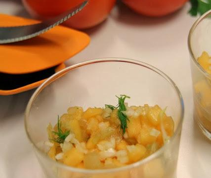 Mélangez bien tous les morceaux et disposez dans des verrines.