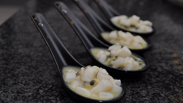 Découper les noix de Saint-Jacques en petit dés pour le tartare.