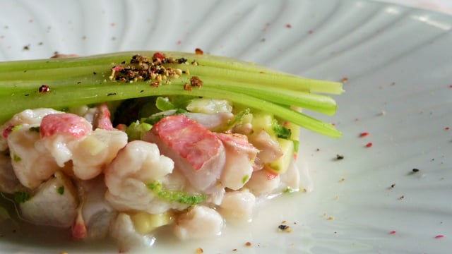 Passez ensuite à la taille de tous vos légumes, puisque vous faites un tartare coupez vos légumes finement (céleri branche et gingembre).