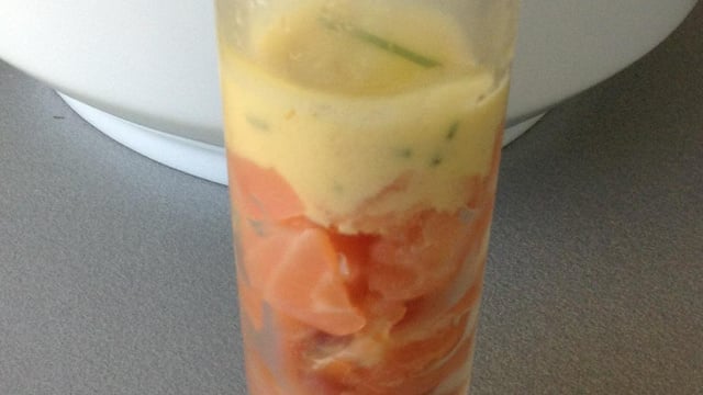 mélanger délicatement le saumon et la sauce. Mettre en verrines et servir frais.