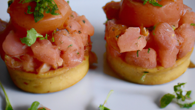 Dresser dans l'assiette à l'aide d'un rond métallique ou présenter en verrine en superposant les couches tomate, saumon fumé, tomate.