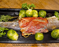 - 1Hacher finement la chair de truite au couteau et réserver au frais. Tapisser 6 ramequins ou cercles en inox de 6cm de haut et 7 cm de diamètre, légèrement huilés, de fines tranches de brési puis hacher le restant du brési. Passer la betterave dans une centrifugeuse pour obtenir du jus ; ciseler l'échalote.