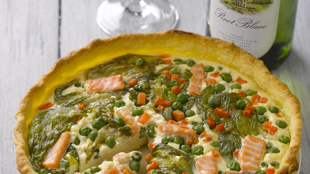 Servir la tarte tiède avec du Pinot Blanc d'Alsace.