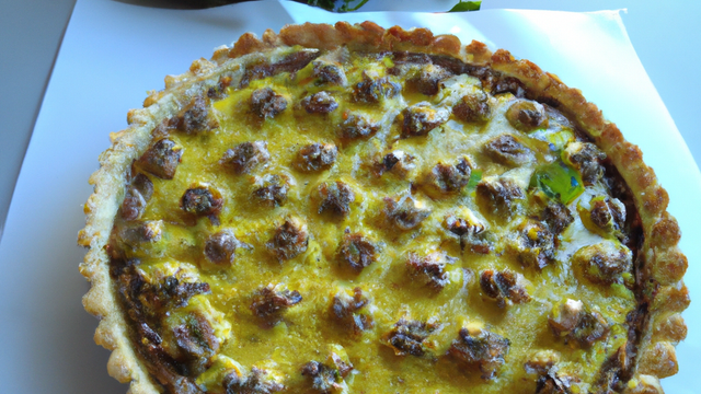 Placer la pâte feuilletée sur un moule à tarte, la piqueter avec la fourchette et recouvrir le fond de moutarde forte Amora.