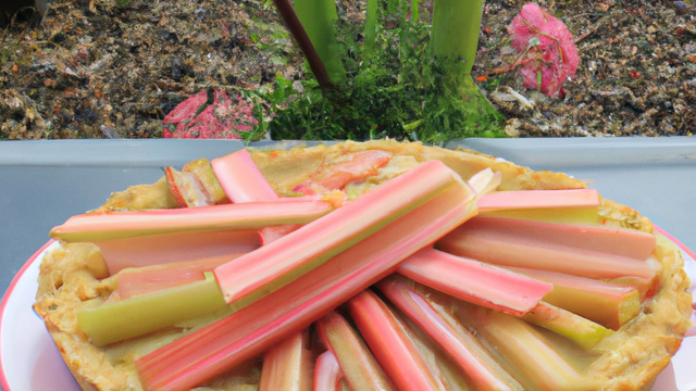 Etaler la rhubarbe sur la pâte pré-cuite et verser votre préparation dessus.