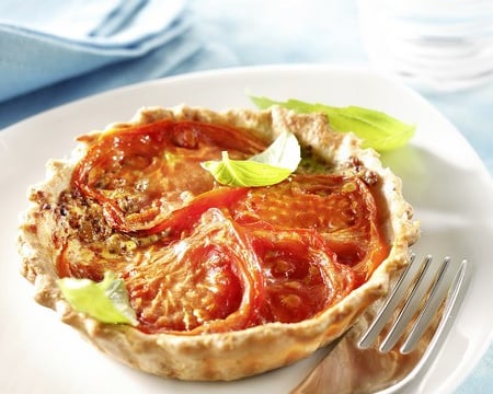 Laisser tiédir la tarte et la parsemer de feuilles de basilic. Déguster tiède ou froide.
