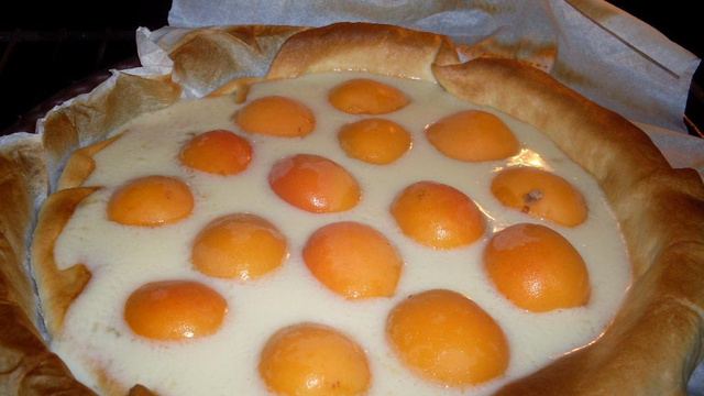 Tarte facile à réaliser avec les bons abricots de l'été ; la traditionnelle crème fraîche a été remplacée par un yaourt afin d'alléger un peu ce délicieux dessert