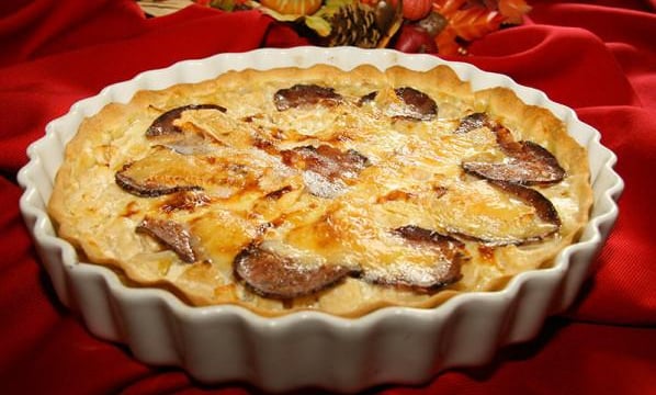 Préchauffer le four à 200°C. Déposez sur le fond de tarte les rondelles d'andouille, puis le mélange crème et pommes. Poivrer et saler légèrement. Disposez les lamelles de camembert restantes sur le dessus et quelques tranches d'andouille. Enfourner pour 30 à 40 min suivant la puissance du four. Peut s'accompagner d'une petite salade.