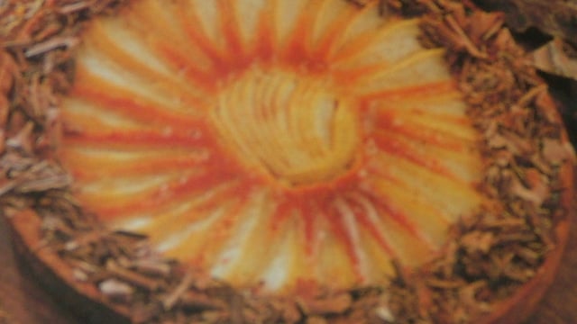 Voici une délicieuse recette de tarte avec des poires et du caramel.