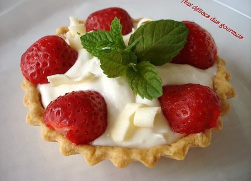 Voici de petites tartelettes au chocolat blanc et aux fraises.