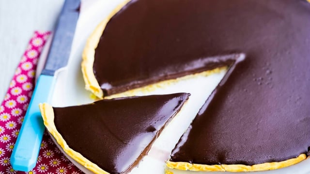 Versez cette préparation sur la pâte sablée puis réservez la tarte au chocolat au moins 3 h au réfrigérateur avant de la déguster.