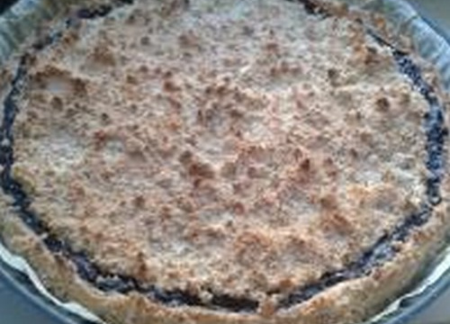 Recouvrir la tarte de crumble et replier les bords de la pâte sablée.
