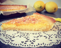 Dans un saladier, battre le beurre et le sucre. Ajouter les oeufs un à un, puis le yaourt (ou fromage blanc) et le zeste du citron ainsi que son jus. Terminer par la noix de coco, mélanger de nouveau. Mettre du papier sulfurisé dans le moule à tarte et étaler celle ci dans le moule. - 3