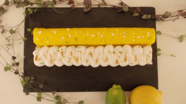Poser le crémeux sur un côté du sablé au citron vert.