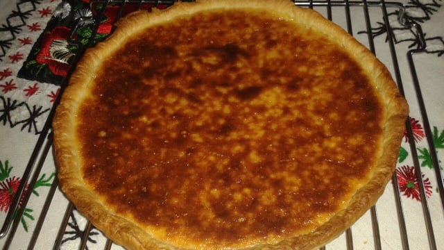 Vous pouvez caraméliser la tarte au riz en la supoudrant de sucre semoule et la passer au grill.