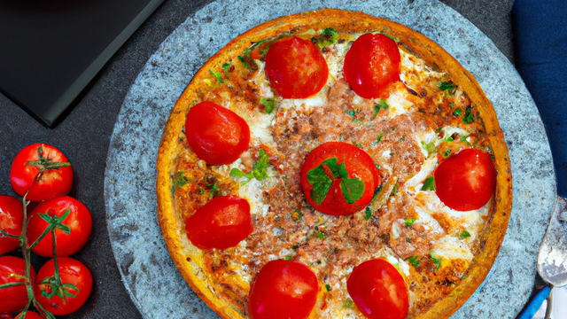 Tarte salée au thon émietté avec rondelles de tomates sur fond de moutarde.