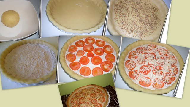 Coupez la tomate en rondelles et disposez-les sur la tarte.