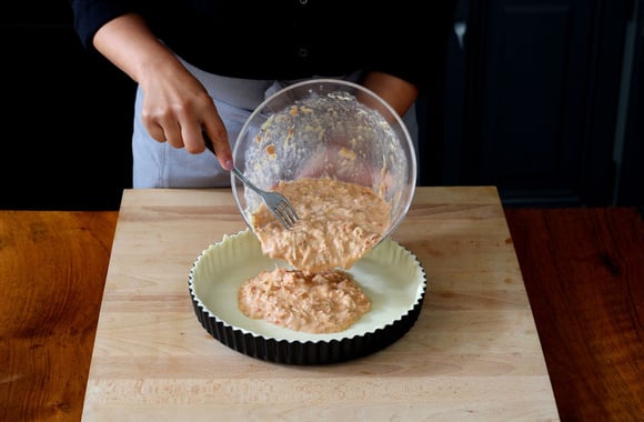 Versez la préparation sur le fond de tarte.