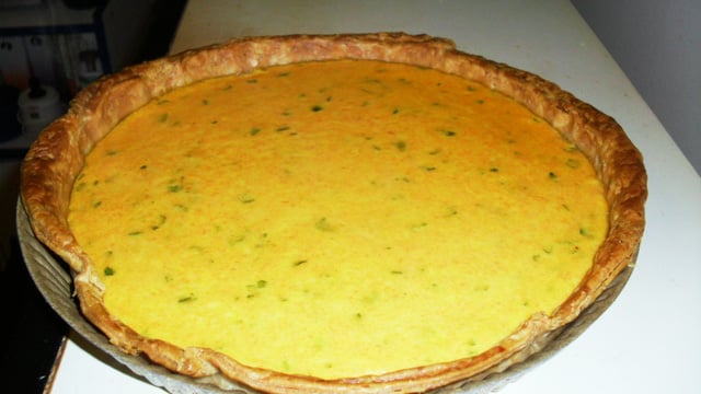 Verser la garniture sur la pâte et faire cuire 40 minutes à 200 °C. Servir chaud.