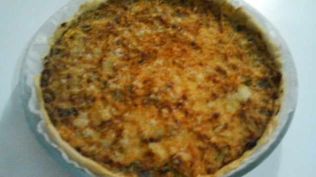 Etaler sur la pâte brisée et recouvrir de fromage rapé.
