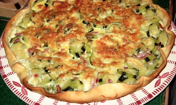 Étaler la pâte brisée, y étaler les courgettes, les lardons de bacon, puis le mélange les oeufs et la crème. Saupoudrer de fromage râpé et faire cuire TH6 pendant 20 minutes.