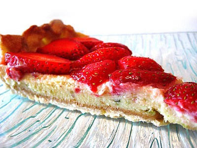 Au moment de servir, disposer sur la préparation les fraises coupées en deux ou trois.