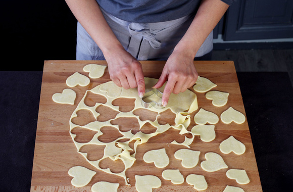6Étalez la seconde pâte sablée. A l'aide d'un emporte-pièce en forme de cœur, détaillez des petits coeurs.