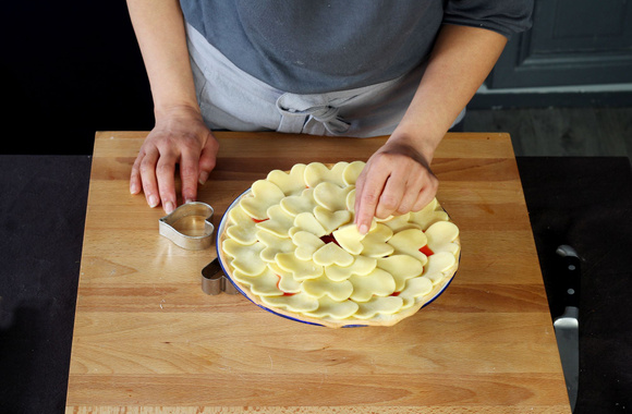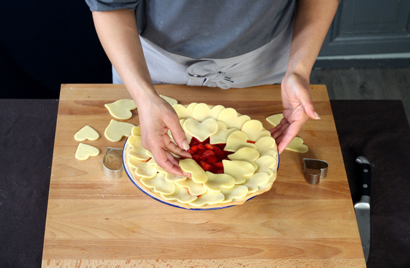 9Continuez à déposer les cœurs en allant vers l'intérieur de la tarte.