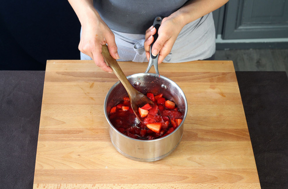 7Versez la garniture à base de fraises dans le moule.