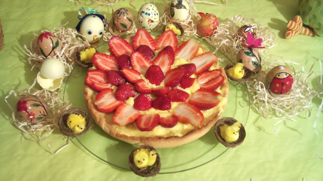 Simple, classique et excellent. Une pâte sucrée, une crème pâtissière et de belles fraises.