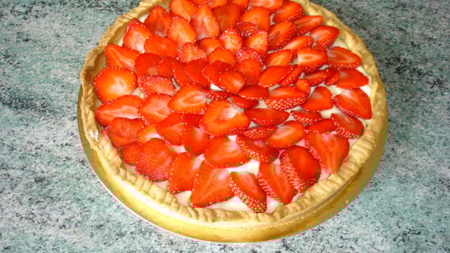 Une pâte sablée croustillante relevée du caviar de vanille, d'une crème semi-mousseline et ses irrésistibles fraises parfumées